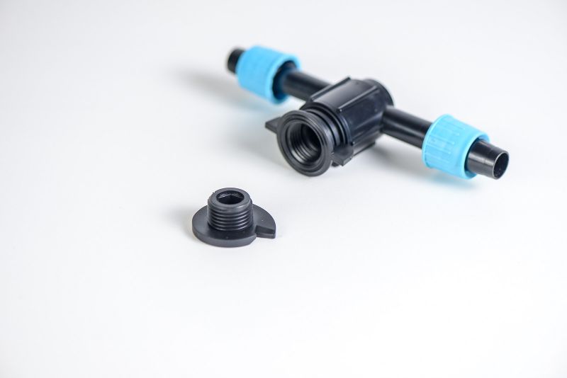 Разветвитель предназначен для присоединения двух тонкостенных капельных лент(толщина стенки до 24 мил)диаметром 16 мм к трубопроводу через резьбовое соединение 3\4”ВР . Конструктивно состоит из корпуса с резьбовым выходом 3\4”ВР и двух гаек для подключения ленты .Выполнен из 2-х видов полимеров. Корпус- иженерный высокопрочный пластик. Гайка - ПП уф устойчивый для создания герметичного плотного соединения.